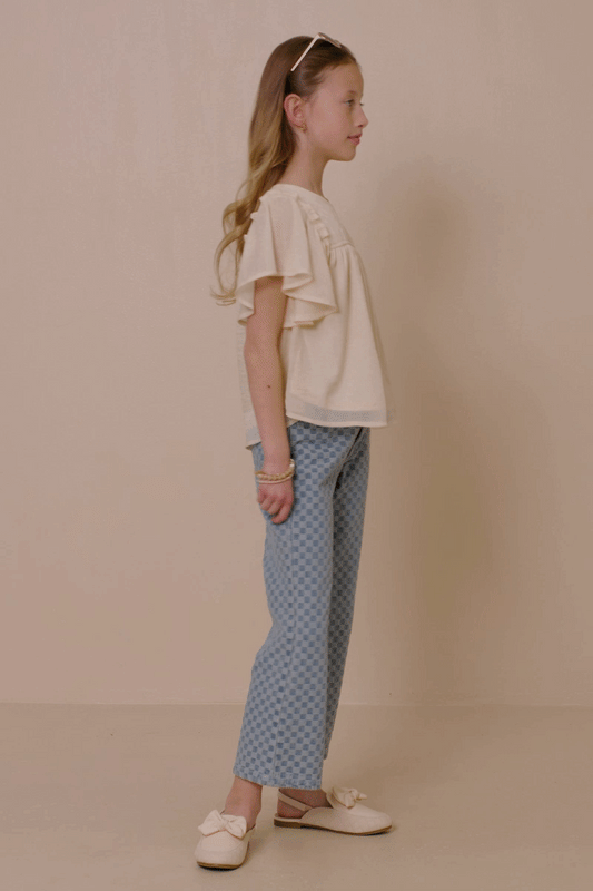 Girls Textured Ruffled Flutter Sleeve Top