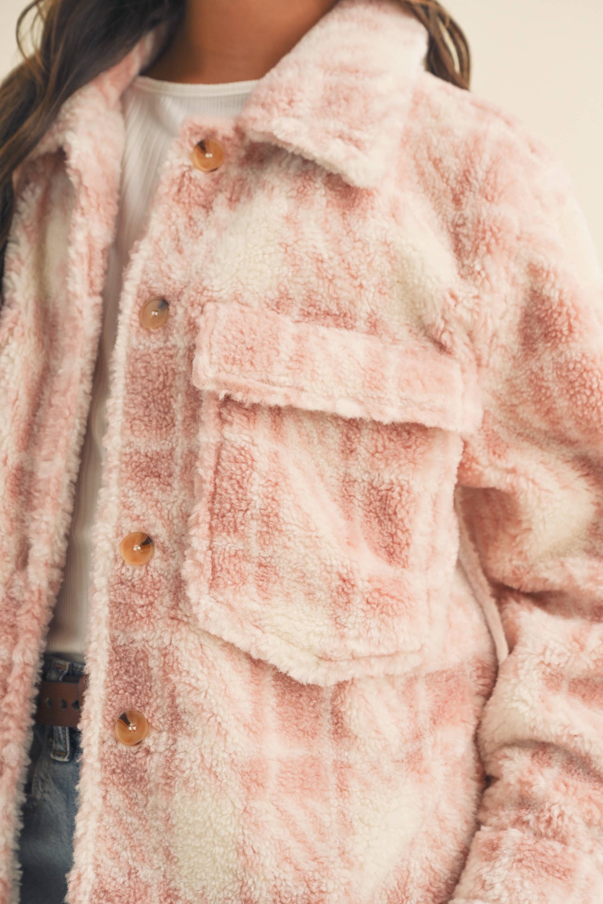 TWEEN KIDS GIRLS DOUBLE POCKET PLAID SHACKET